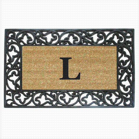 Nedia Home 18014L Acanthus Border 22 x 36 In. Rubber-Coir Doormat - Monogrammed L