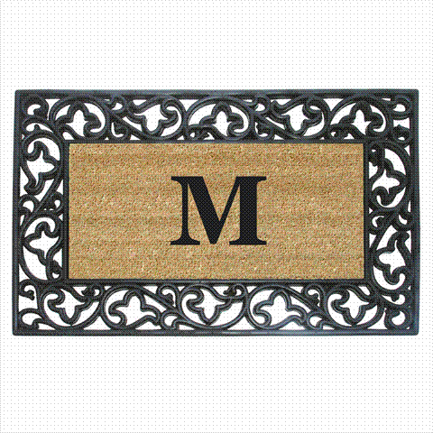 Nedia Home Acanthus Border with Rubber/Coir Doormat, 22 by 36-Inch, Monogrammed M