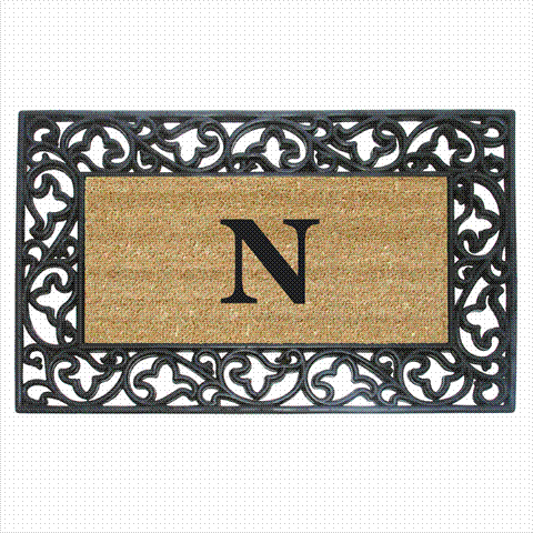 Nedia Home 18014N Acanthus Border 22 x 36 In. Rubber-Coir Doormat - Monogrammed N