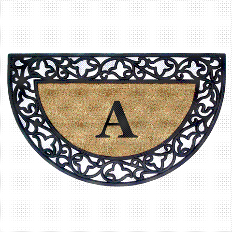 Nedia Home 18023A Acanthus Border 22 x 36 In. Half Round Rubber-Coir Doormat - Monogrammed A