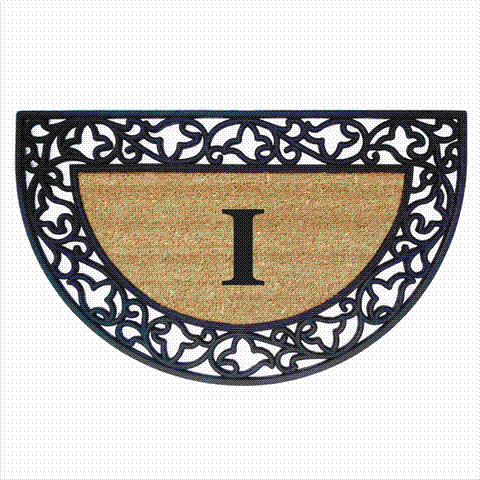 Nedia Home 18023I Acanthus Border 22 x 36 In. Half Round Rubber-Coir Doormat - Monogrammed I