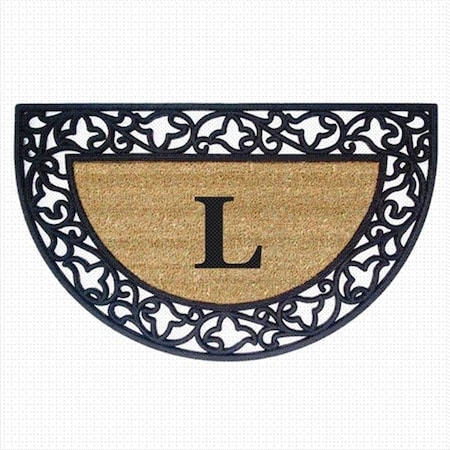 Nedia Home 18023L Acanthus Border 22 x 36 In. Half Round Rubber-Coir Doormat - Monogrammed L