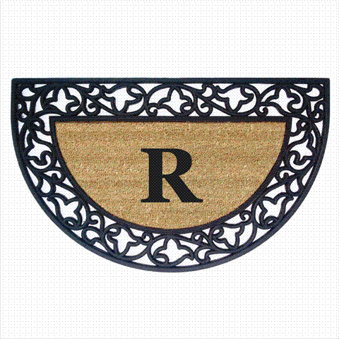 Nedia Home 18023R Acanthus Border 22 x 36 In. Half Round Rubber-Coir Doormat - Monogrammed R