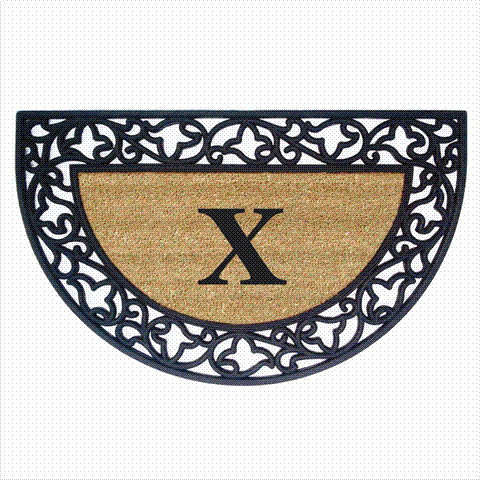 Nedia Home 18023X Acanthus Border 22 x 36 In. Half Round Rubber-Coir Doormat - Monogrammed X