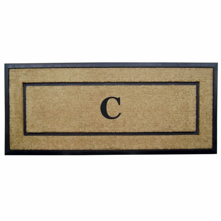 Nedia Home Single Picture Black Frame with Coir Rubber Border Dirt Buster Doormat, 24 by 57-Inch, Monogrammed C