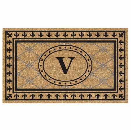 Nedia Home 33018V 30 x 18 in. SuperScraper Vinyl Coir Bungalow Black Mat - Monogrammed V