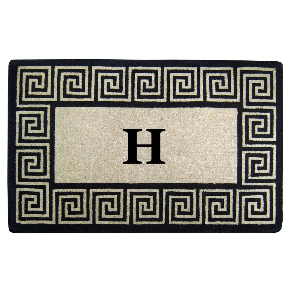 Nedia Home GKH3048 30 x 48 in. Greek Key Heavy Duty Coco Coir Door Mat, Monogrammed H - Natural Tan & Black