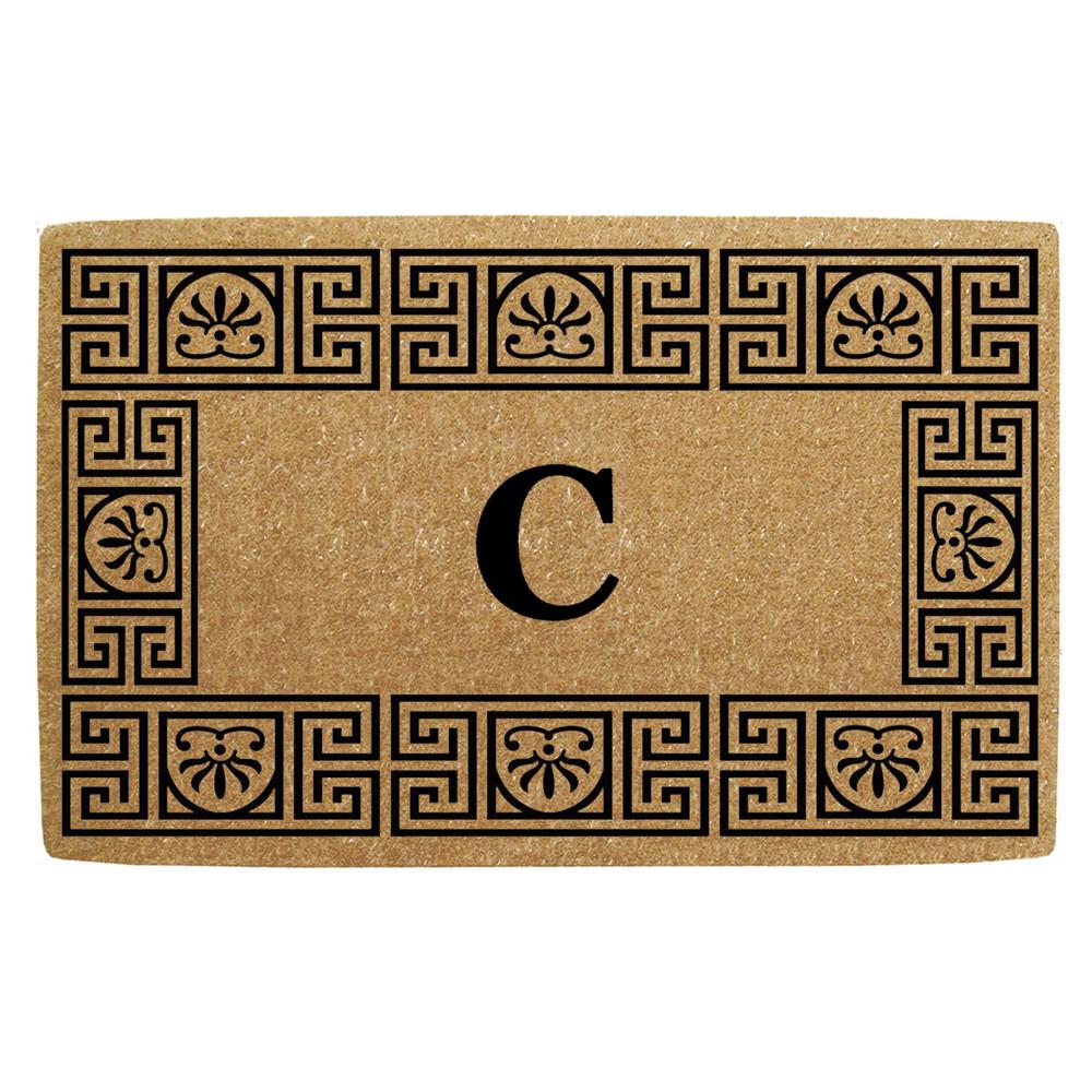 Nedia Home GRC2439 24 x 39 in. Greco Heavy Duty Coco Coir Door Mat, Monogrammed C - Natural Tan & Black