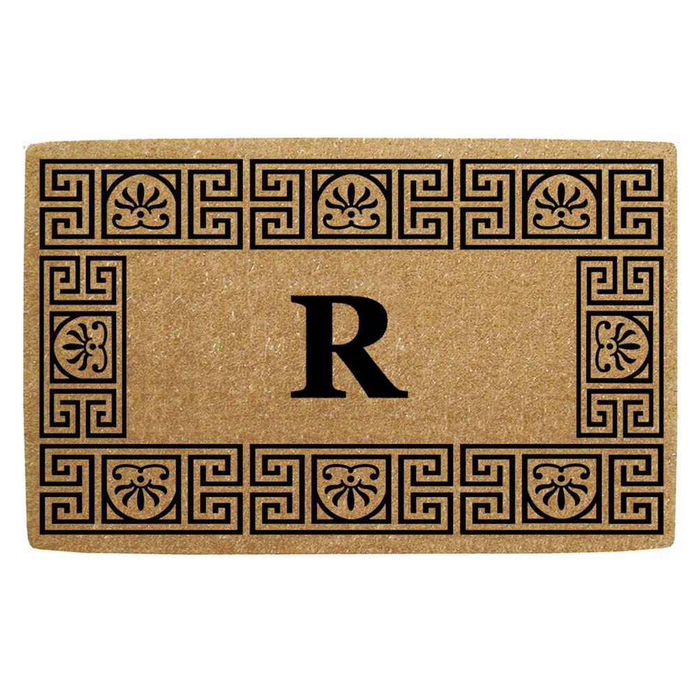 Nedia Home GRR2439 24 x 39 in. Greco Heavy Duty Coco Coir Door Mat, Monogrammed R - Natural Tan & Black