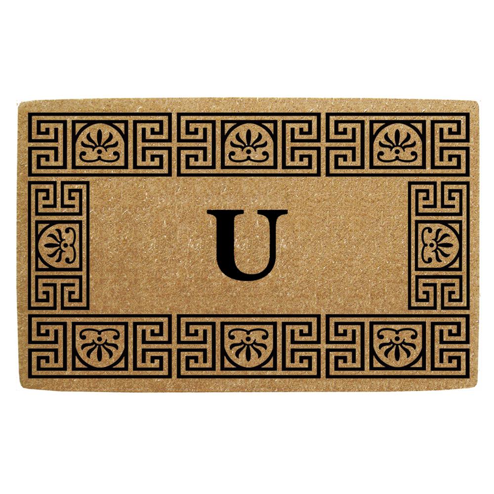 Nedia Home GRU2439 24 x 39 in. Greco Heavy Duty Coco Coir Door Mat, Monogrammed U - Natural Tan & Black