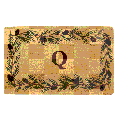 Nedia Home 02011Q Heavy Duty Coco Mat 22 x 36 In. Evergreen Border Monogrammed Q
