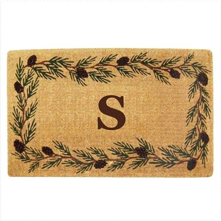 Nedia Home 02011S Heavy Duty Coco Mat 22 x 36 In. Evergreen Border Monogrammed S
