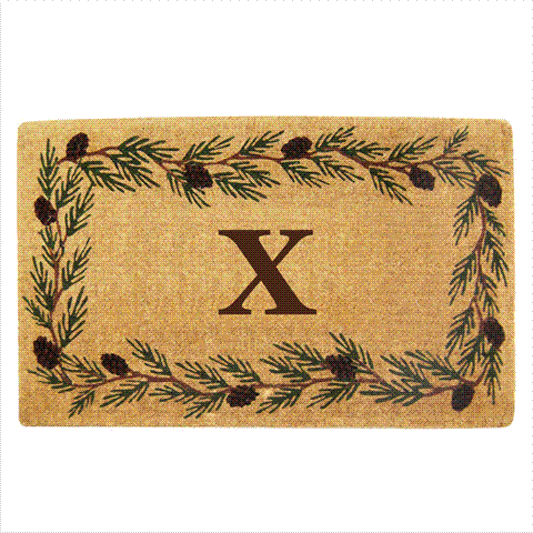 Nedia Home 02011X Heavy Duty Coco Mat 22 x 36 In. Evergreen Border Monogrammed X