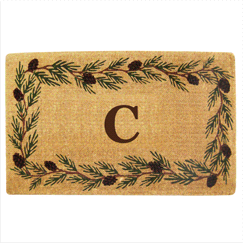 Nedia Home Heavy Duty Coco Mat with Evergreen Border, 30 by 48-Inch, Monogrammed C