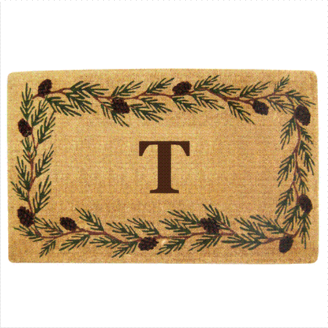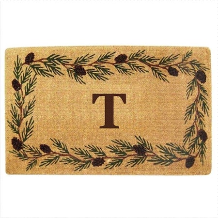 Nedia Home Heavy Duty Coco Mat with Evergreen Border, 30 by 48-Inch, Monogrammed T