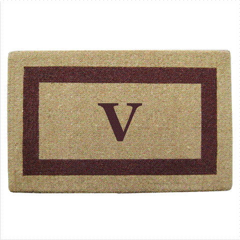 Nedia Home 02023V Single Picture - Brown Frame 22 x 36 In. Heavy Duty Coir Doormat - Monogrammed V