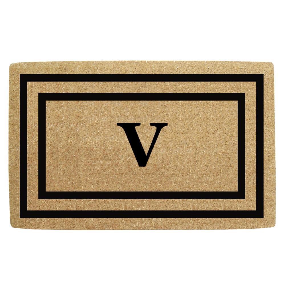 Nedia Home O2044V 22 x 36 in. Thin Double Picture Frame Heavy Duty Coir Door Mat, Monogrammed V - Black