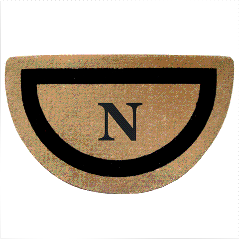 Nedia Home 02053N Single Picture - Black Frame 22 x 36 In. Half Round Heavy Duty Coir Doormat - Monogrammed N