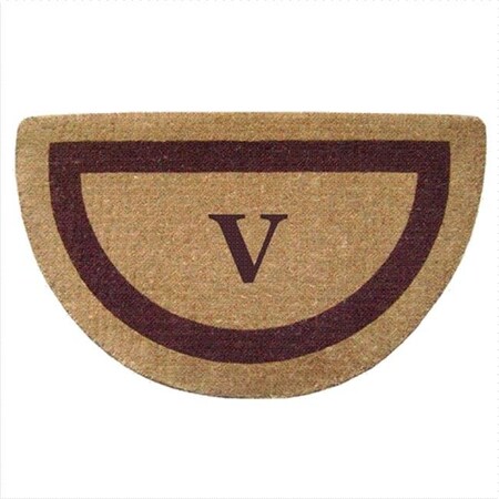 Nedia Home 02055V Single Picture - Brown Frame 22 x 36 In. Half Round Heavy Duty Coir Doormat - Monogrammed V