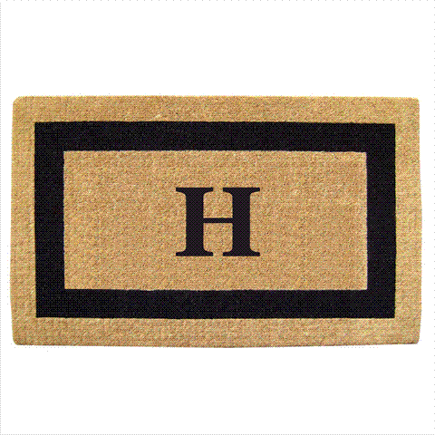 Nedia Home 02071H Single Picture - Black Frame 24 x 57 In. Heavy Duty Coir Doormat - Monogrammed H