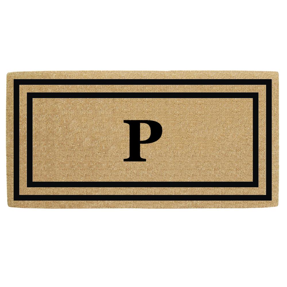Nedia Home O2182P 36 x 72 in. Thin Double Picture Frame Heavy Duty Coir Door Mat, Monogrammed P - Black