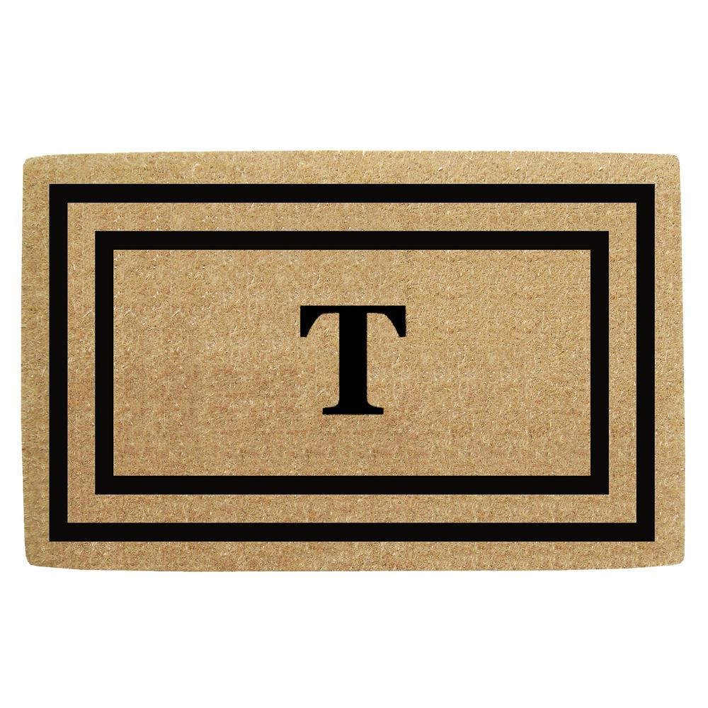 Nedia Home O2182T 36 x 72 in. Thin Double Picture Frame Heavy Duty Coir Door Mat, Monogrammed T - Black