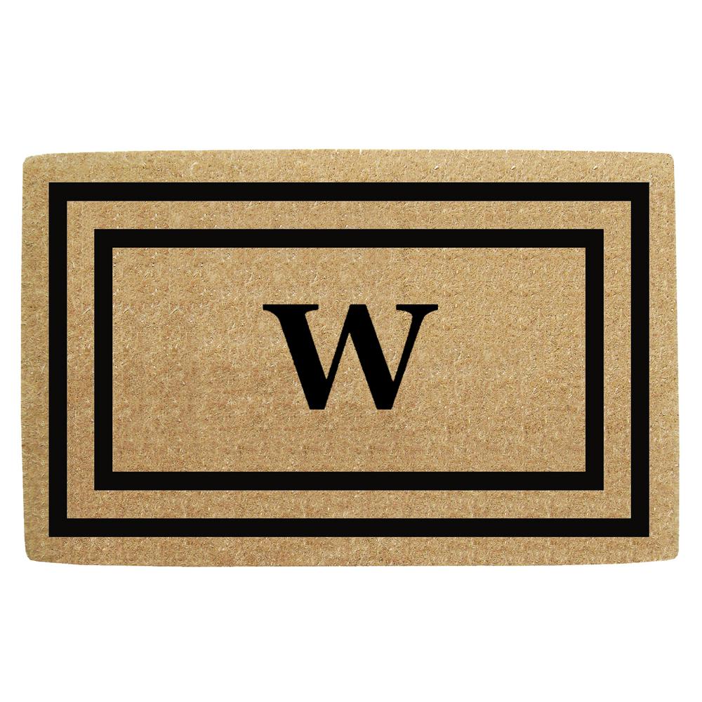 Nedia Home O2182W 36 x 72 in. Thin Double Picture Frame Heavy Duty Coir Door Mat, Monogrammed W - Black