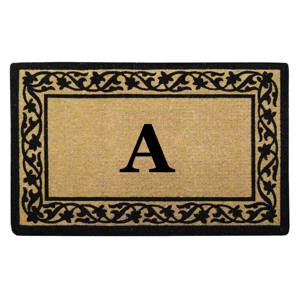 Nedia Home O2187A 22 x 36 in. Florentine Heavy Duty Coir Door Mat, Monogrammed A - Black