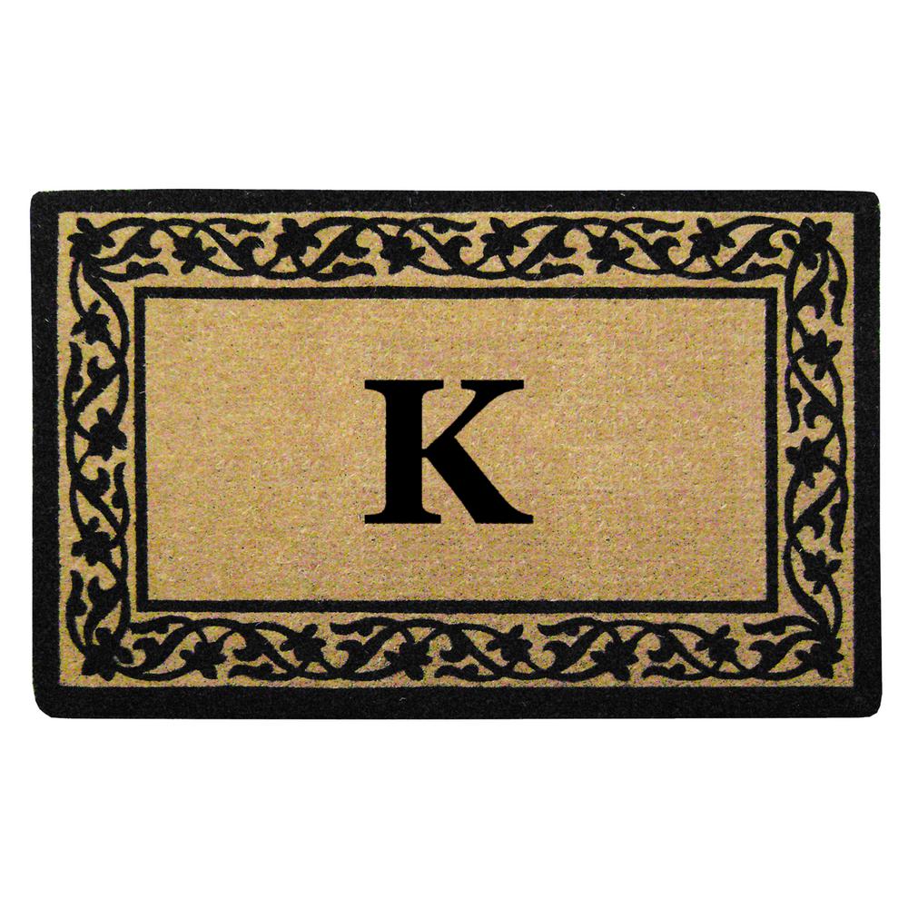 Nedia Home O2187K 22 x 36 in. Florentine Heavy Duty Coir Door Mat, Monogrammed K - Black