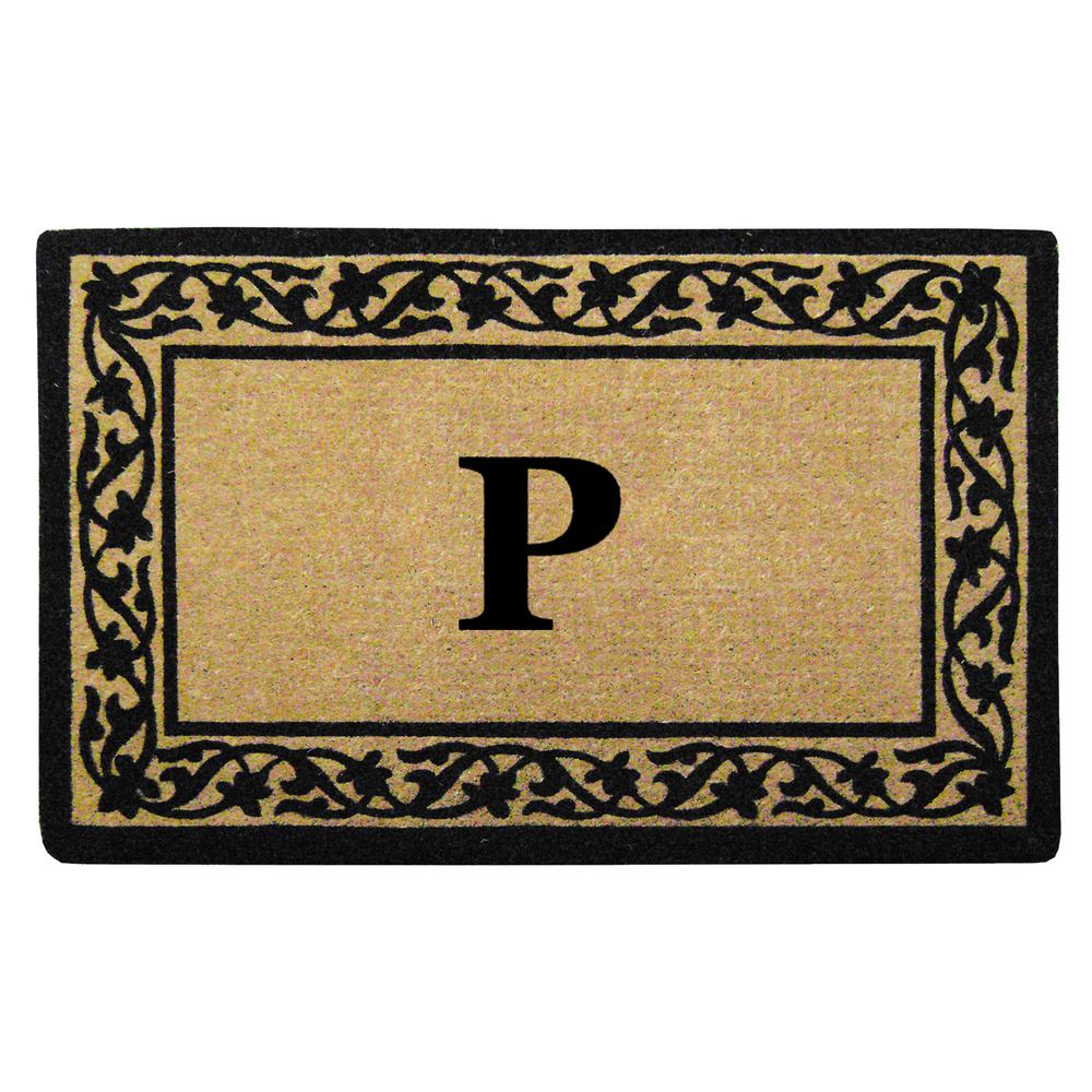 Nedia Home O2187P 22 x 36 in. Florentine Heavy Duty Coir Door Mat, Monogrammed P - Black