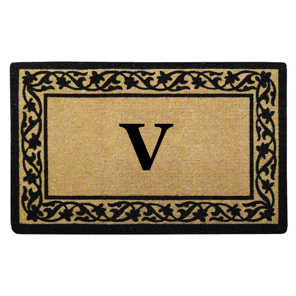 Nedia Home O2187V 22 x 36 in. Florentine Heavy Duty Coir Door Mat, Monogrammed V - Black