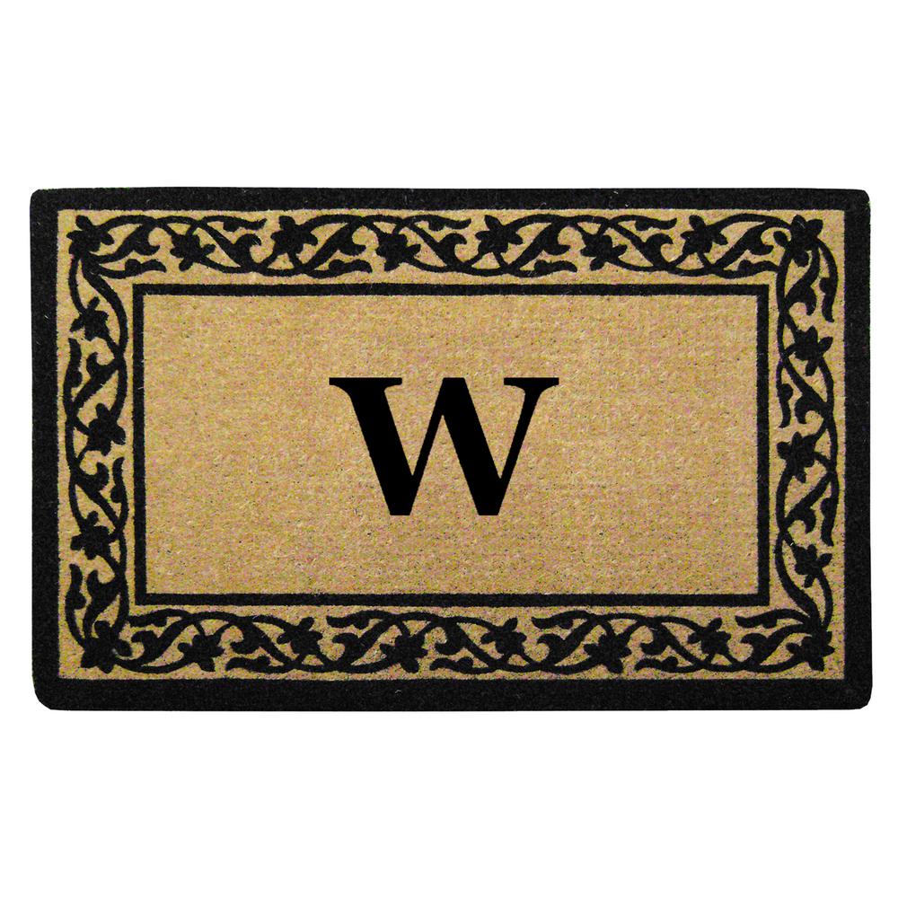 Nedia Home O2187W 22 x 36 in. Florentine Heavy Duty Coir Door Mat, Monogrammed W - Black