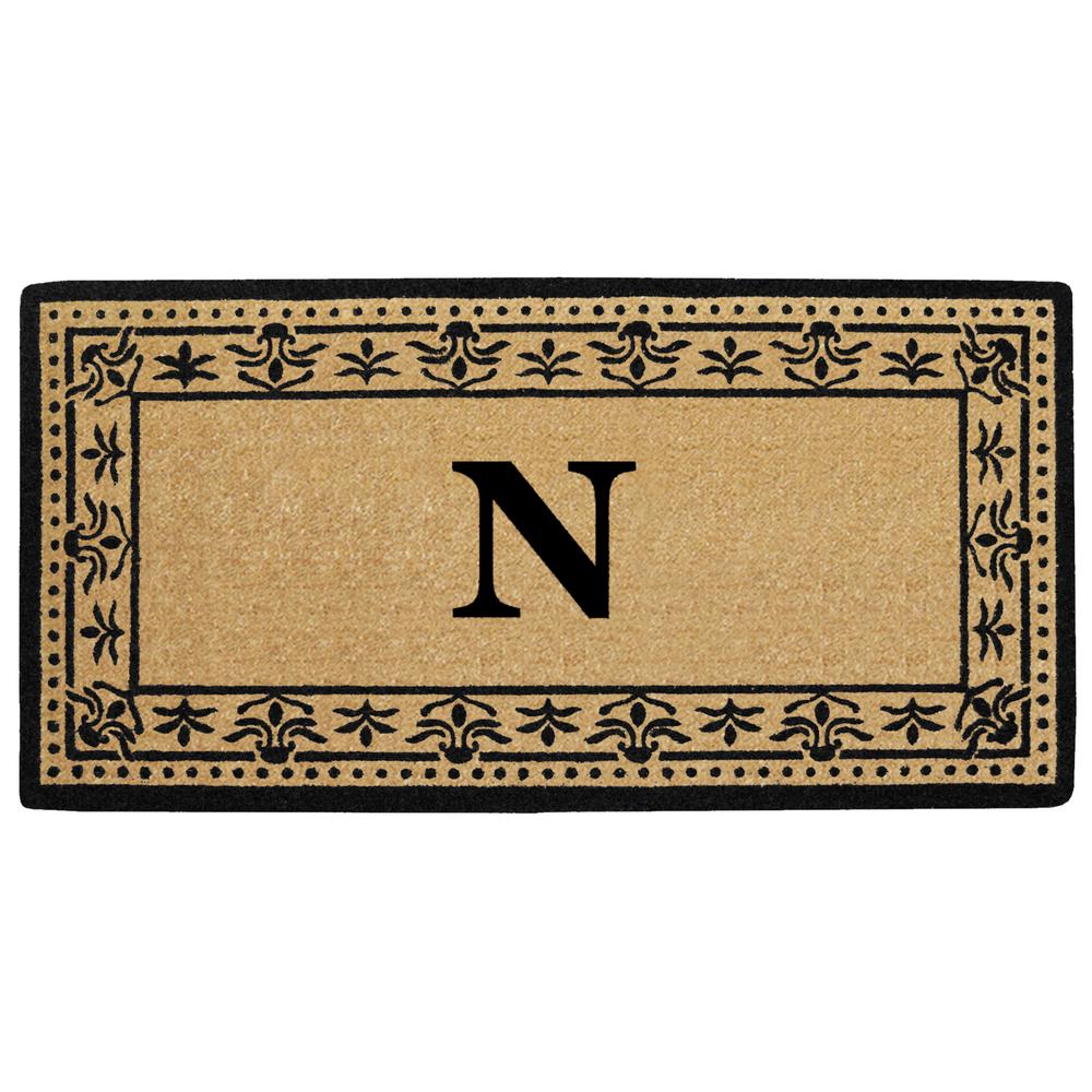 Nedia Home O2193N 22 x 36 in. Corinthian Heavy Duty Coir Door Mat, Monogrammed N - Black