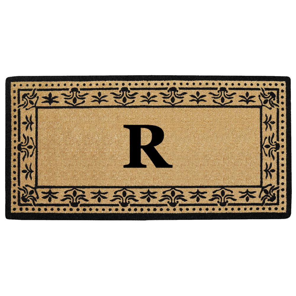 Nedia Home O2193R 22 x 36 in. Corinthian Heavy Duty Coir Door Mat, Monogrammed R - Black