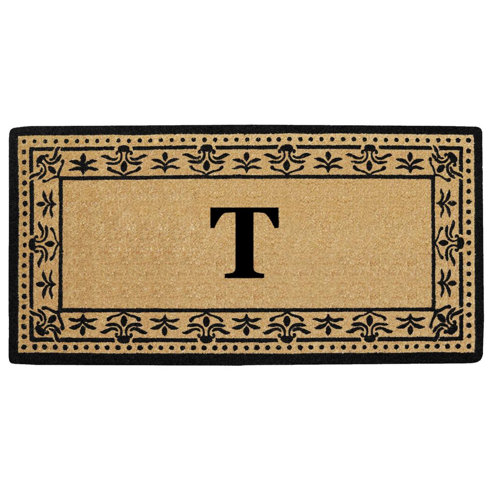 Nedia Home O2193T 22 x 36 in. Corinthian Heavy Duty Coir Door Mat, Monogrammed T - Black