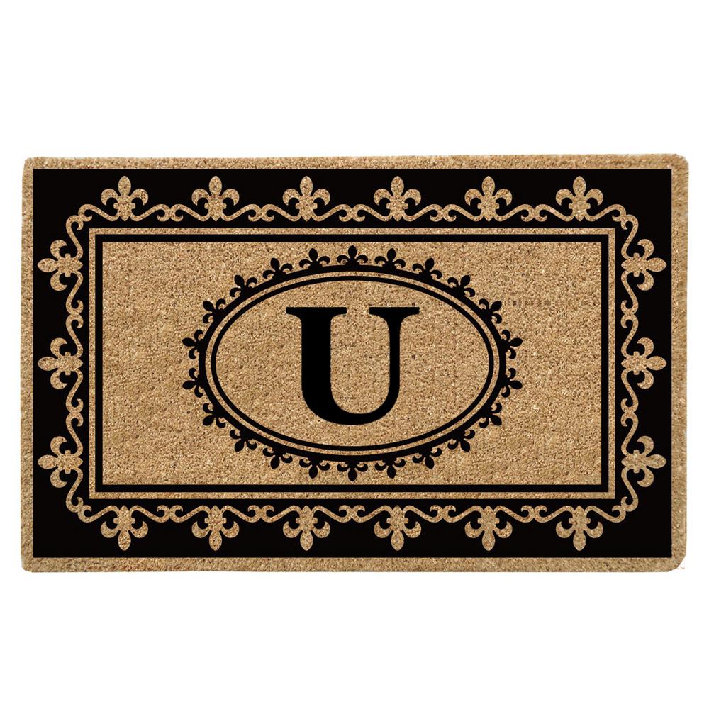 Nedia Home O2214U 22 x 36 in. Fleur De Lys Heavy Duty Coir Door Mat, Monogrammed U - Natural Tan & Black