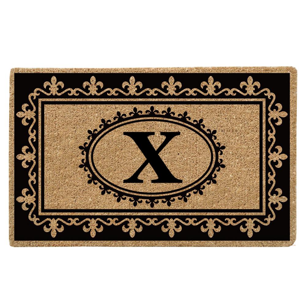 Nedia Home O2214X 22 x 36 in. Fleur De Lys Heavy Duty Coir Door Mat, Monogrammed X - Natural Tan & Black