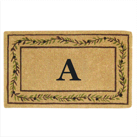 Nedia Home 02228A Heavy Duty Coco Mat 22 x 36 In. Olive Branch Border Monogrammed A