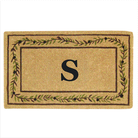 Heavy Duty 22" x 36" Coco Mat Olive Branch Border, Monogrammed S