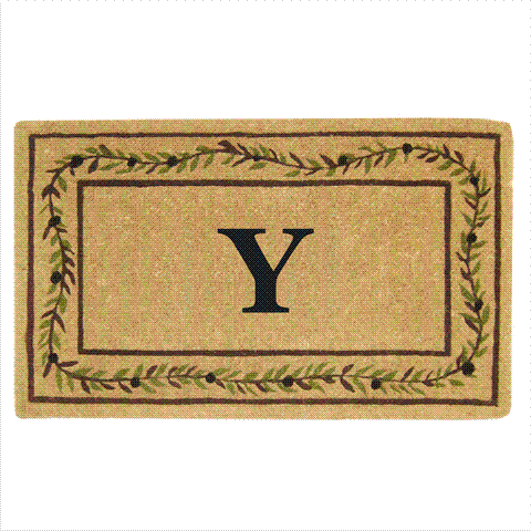 Nedia Home 02228Y Heavy Duty Coco Mat 22 x 36 In. Olive Branch Border Monogrammed Y