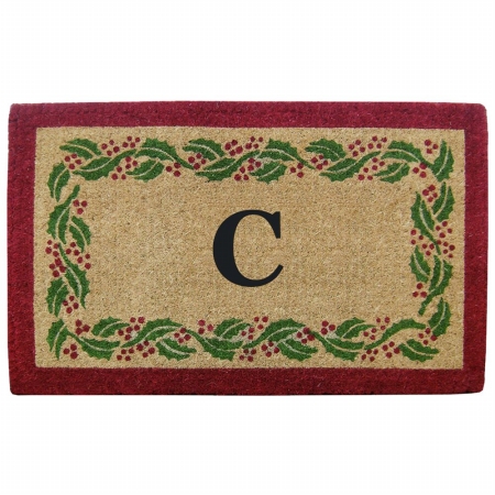 Nedia Home O2252C Heavy Duty 22 x 36 in. Coco Mat - Holly Ivory Border Monogrammed C