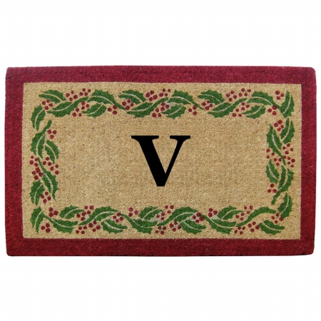Nedia Home O2252V Heavy Duty 22 x 36 in. Coco Mat - Holly Ivory Border Monogrammed V