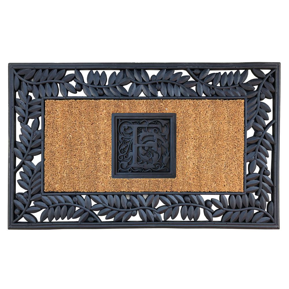 Nedia Home SOF2236 22 x 36 in. Olive Border Sentinel Door Mat, Monogrammed F - Natural Brown & Black