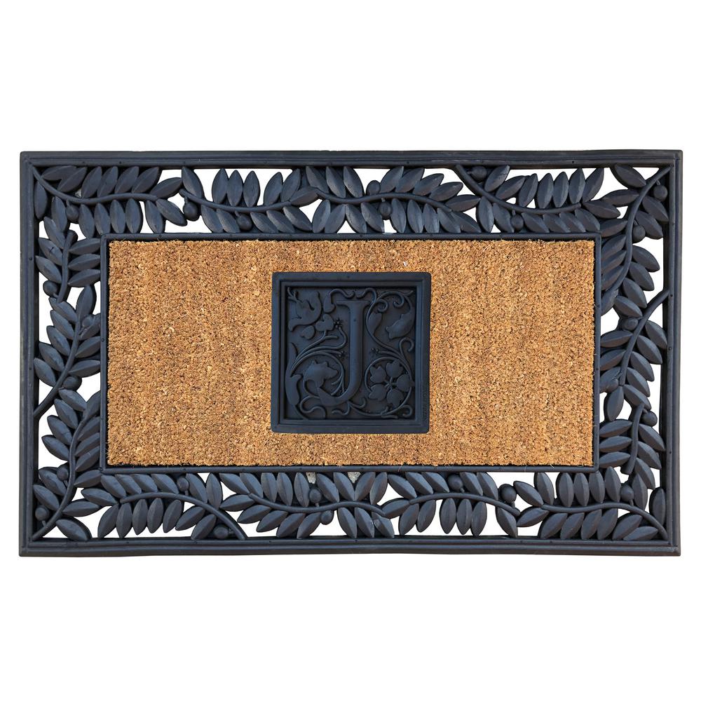 Nedia Home SOJ2236 22 x 36 in. Olive Border Sentinel Door Mat, Monogrammed J - Natural Brown & Black