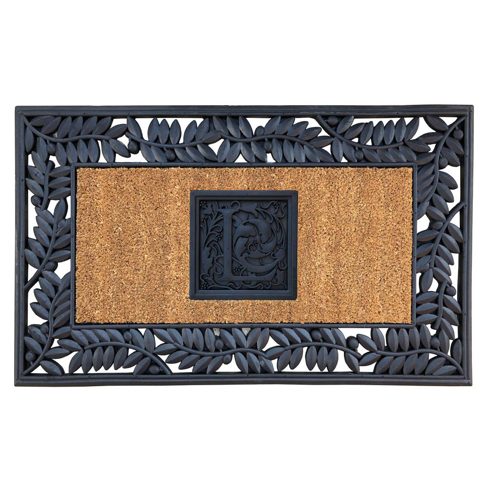 Nedia Home SOL2457 24 x 57 in. Olive Border Sentinel Door Mat, Monogrammed L - Natural Brown & Black