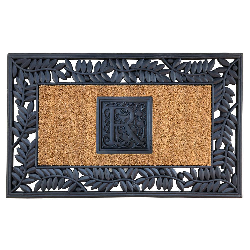 Nedia Home SOR2457 24 x 57 in. Olive Border Sentinel Door Mat, Monogrammed R - Natural Brown & Black
