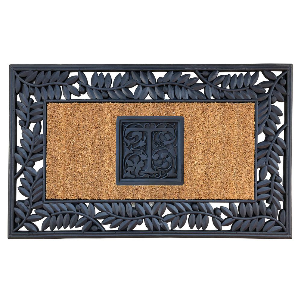 Nedia Home SOT2457 24 x 57 in. Olive Border Sentinel Door Mat, Monogrammed T - Natural Brown & Black