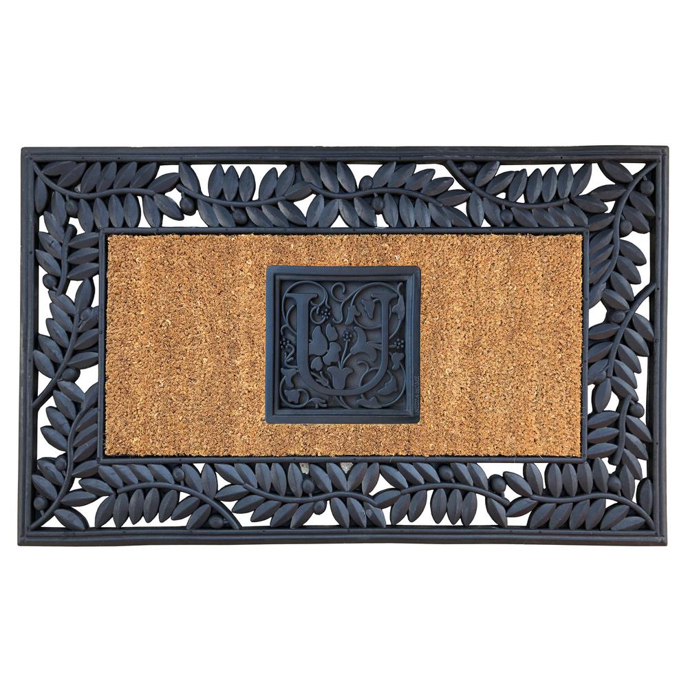 Nedia Home SOU3048 30 x 48 in. Olive Border Sentinel Door Mat, Monogrammed U - Natural Brown & Black