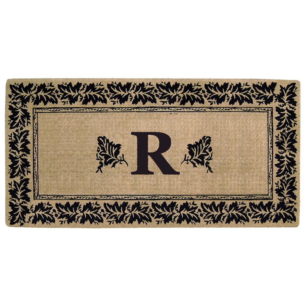 Nedia Home VYR3672 36 x 72 in. Vineyard Heavy Duty Coir Door Mat, Monogrammed R - Natural Tan & Black