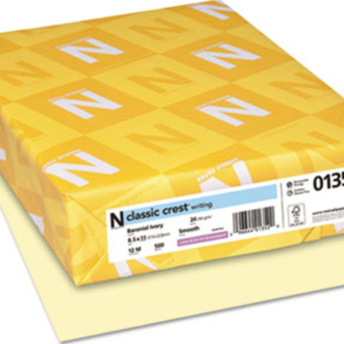 Neenah Paper Products - Neenah Paper - Classic Crest Writing Paper, 24 lbs., 8-1/2 x 11, Baronial Ivory, 500/Ream - Sold As 1 Ream - Premium watermarked papers. - Guaranteed for use in laser or inkjet printers and high-speed copiers. - Acid-free for archival quality. - Smooth finish enhances professional identity. - Perfect for letterhead, business proposals and newsletters.